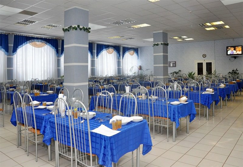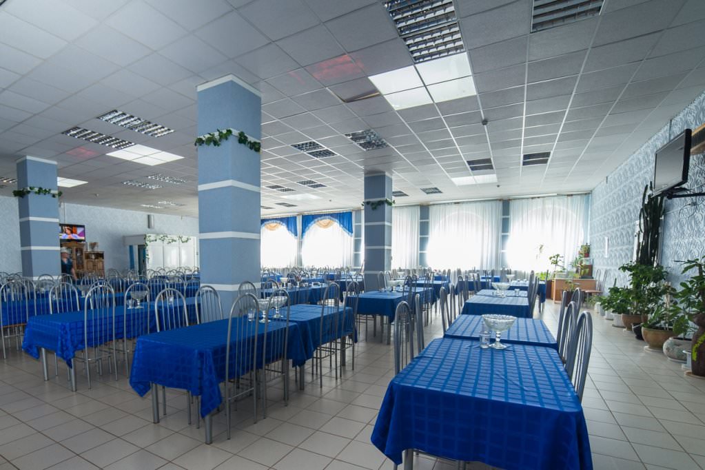 Питание проходит в обеденном зале столовой, которая рассчитана на 240 мест. Для гостей составляется полезный и диетический рацион питания. В него всегда включены соки, фрукты и витаминные салаты.